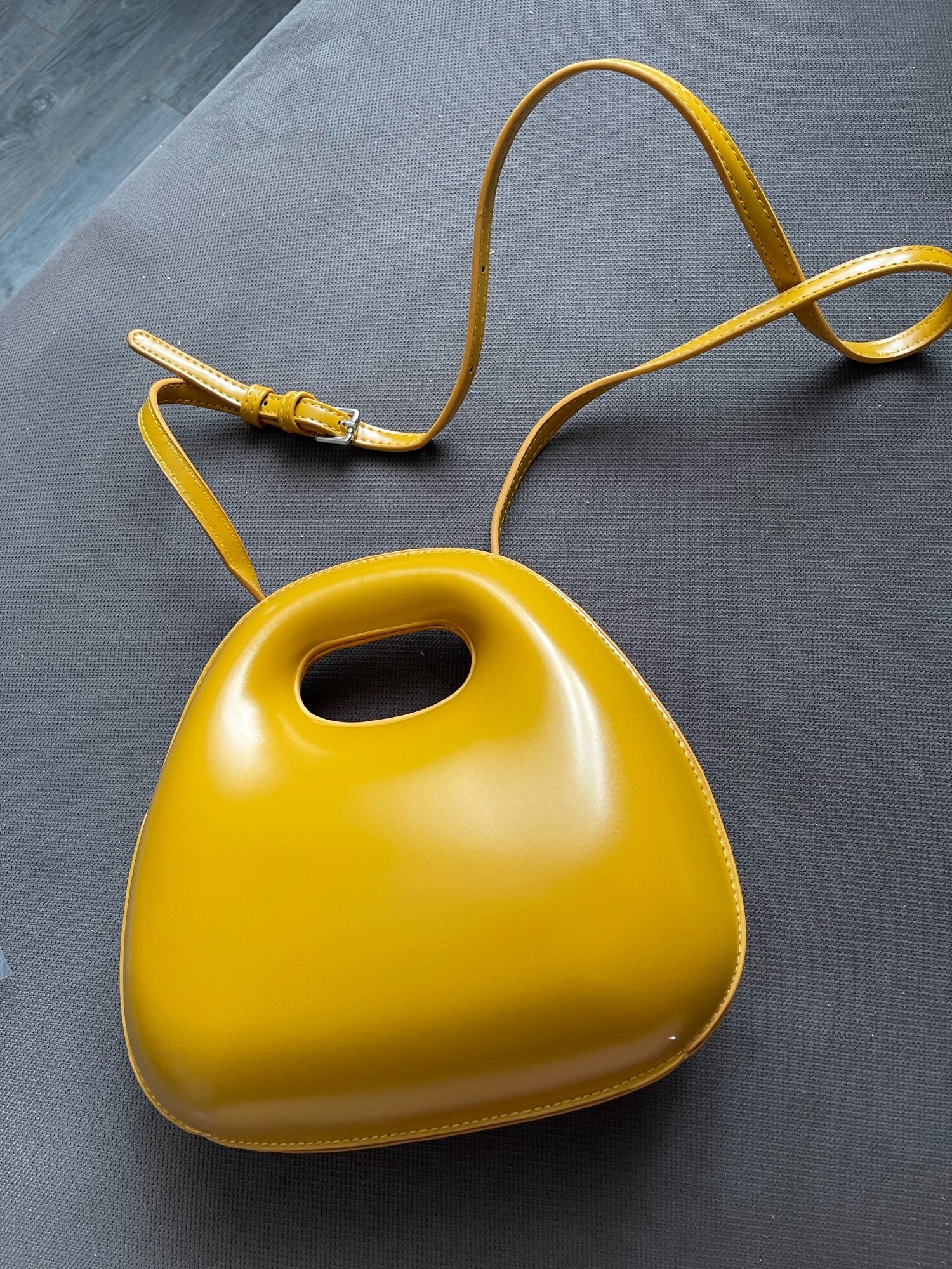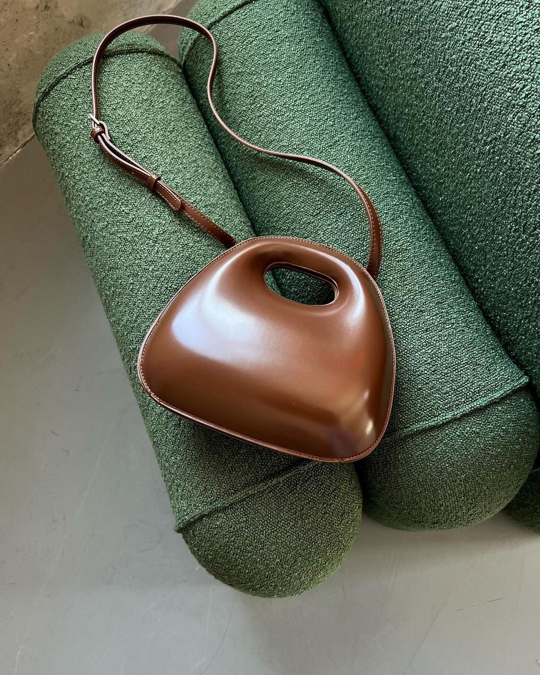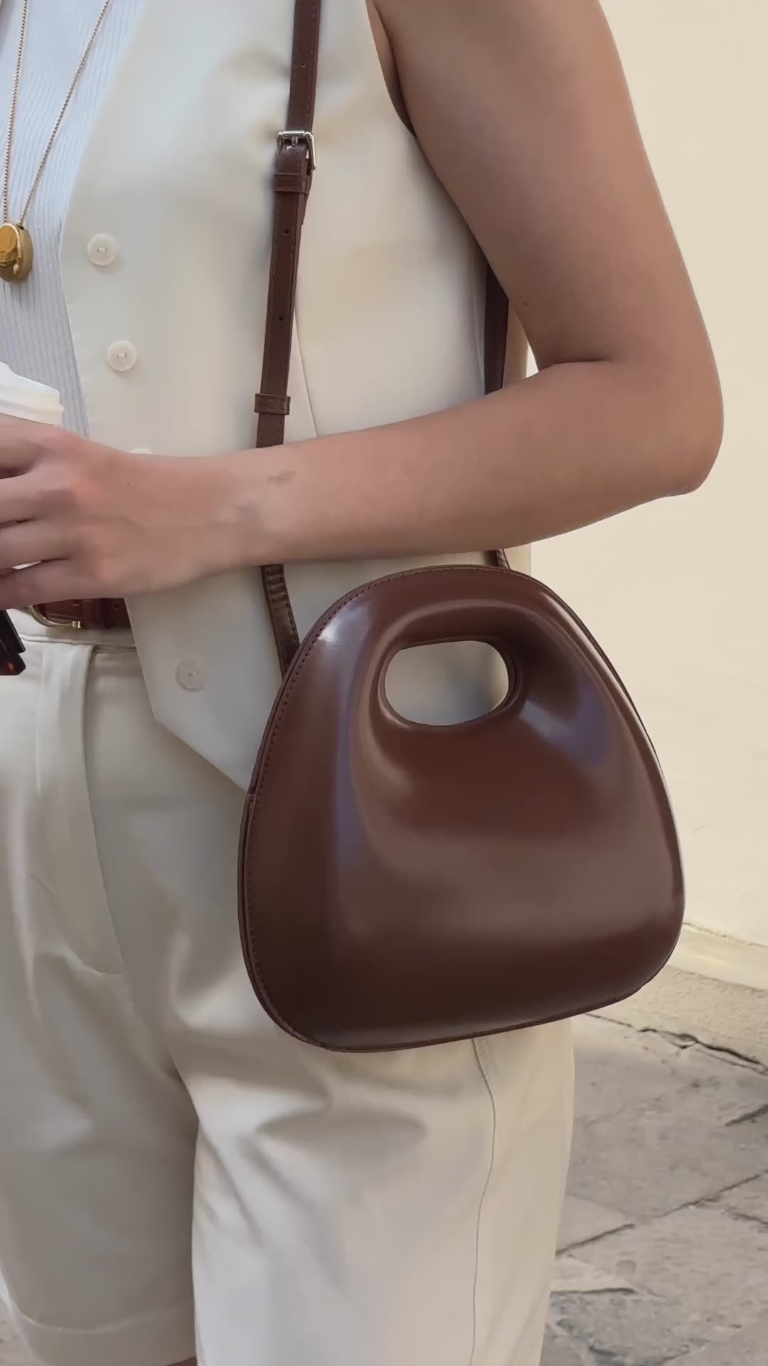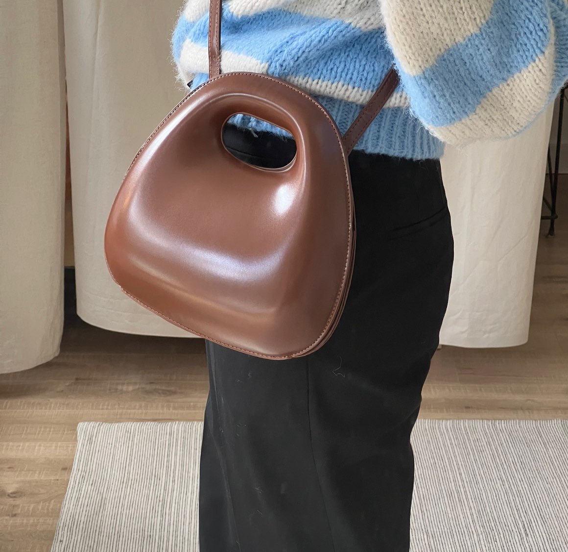 A Bolsa Maria possui alça à tiracolo e tecido estruturado.